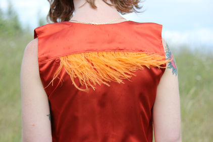 The Showsuit is created from 15 t-shirts and sweatshirts, and one scarf that I had collected from different events or groups that I have participated in. Many have a tradition of creating quilts out of sentimental t-shirts, but I wanted to create something that stayed true to my time in Colorguard and performance. Which had to be something outrageous, and perhaps not conventionally beautiful. Additionally, leftover craft supplies, like yarn, were used to “muppet-ify” this garment. Adding the crochet work into this suit was my way to bring in characteristics that I have created into puppets that I have worked on.